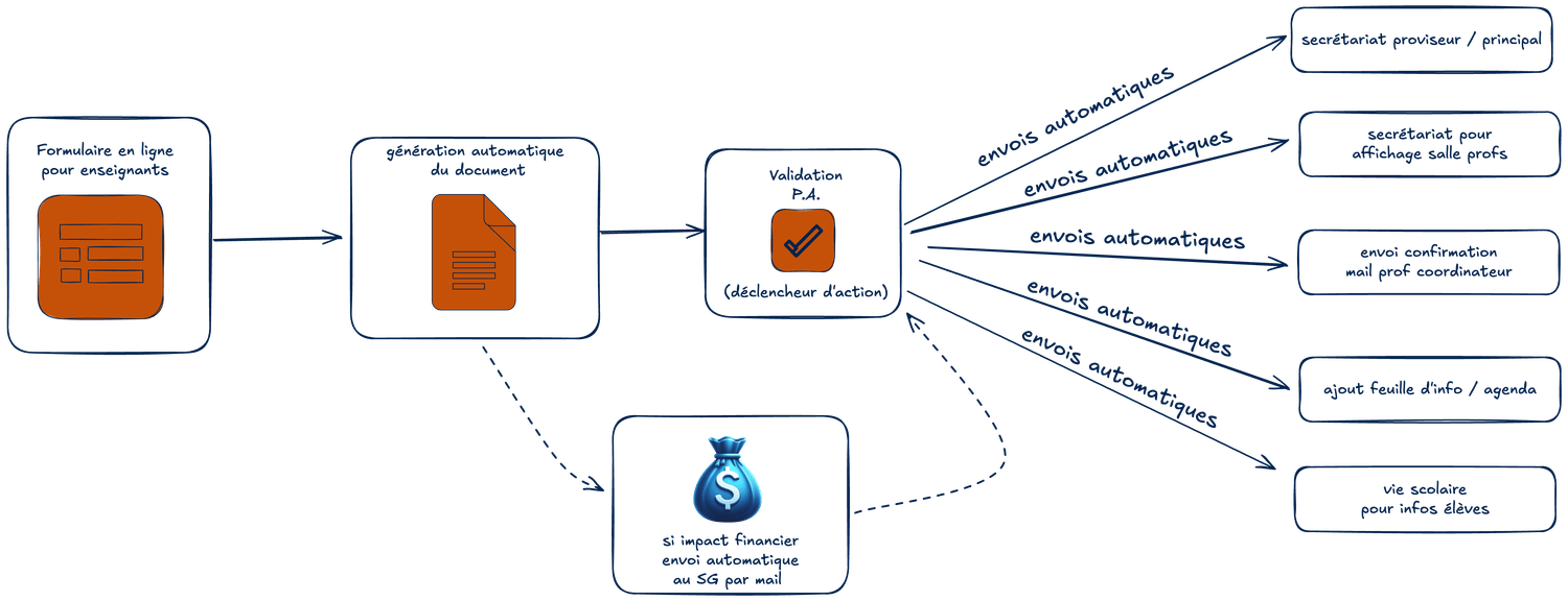 Des exemples concrets que vous pouvez immédiatement appliquer à votre EPLE ou autre contexte éducatif. De la gestion des examens, des emplois du temps à l’automatisation des suivis administratifs, tout est conçu pour être directement opérationnel.
